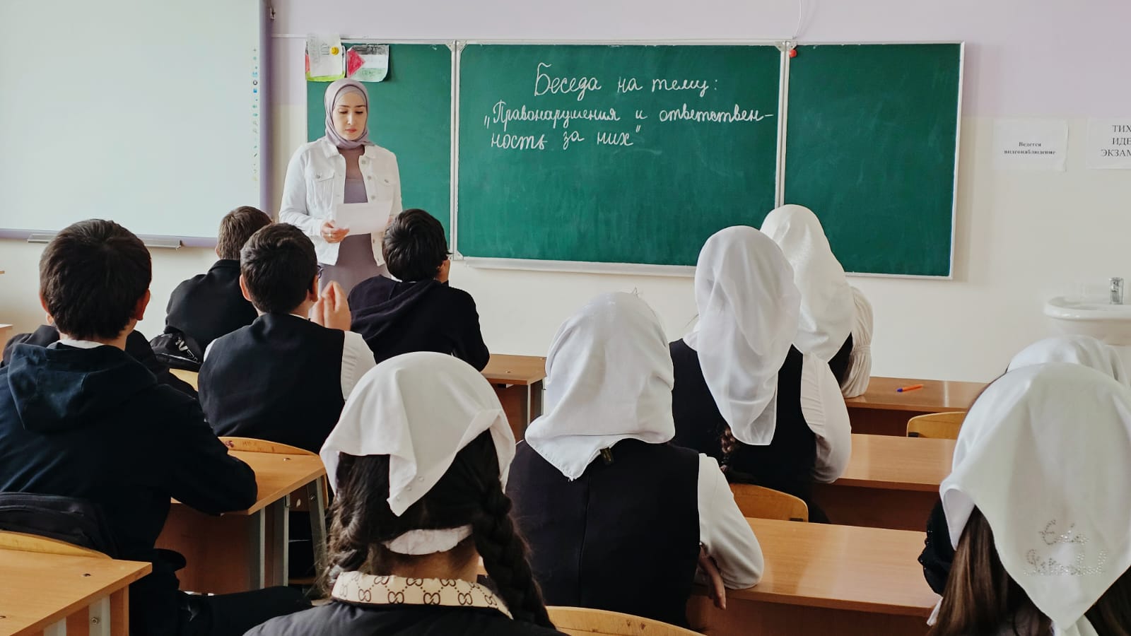 14.05.2024В МБОУ "СОШ9 г.Урус-Мартан" прошла беседа на тему "Правонарушения и ответственность за них".Целью которого является познакомить учащихся с понятиями "проступок", "правонарушение", "преступление", "ответственность, с их значением в жизни человека.