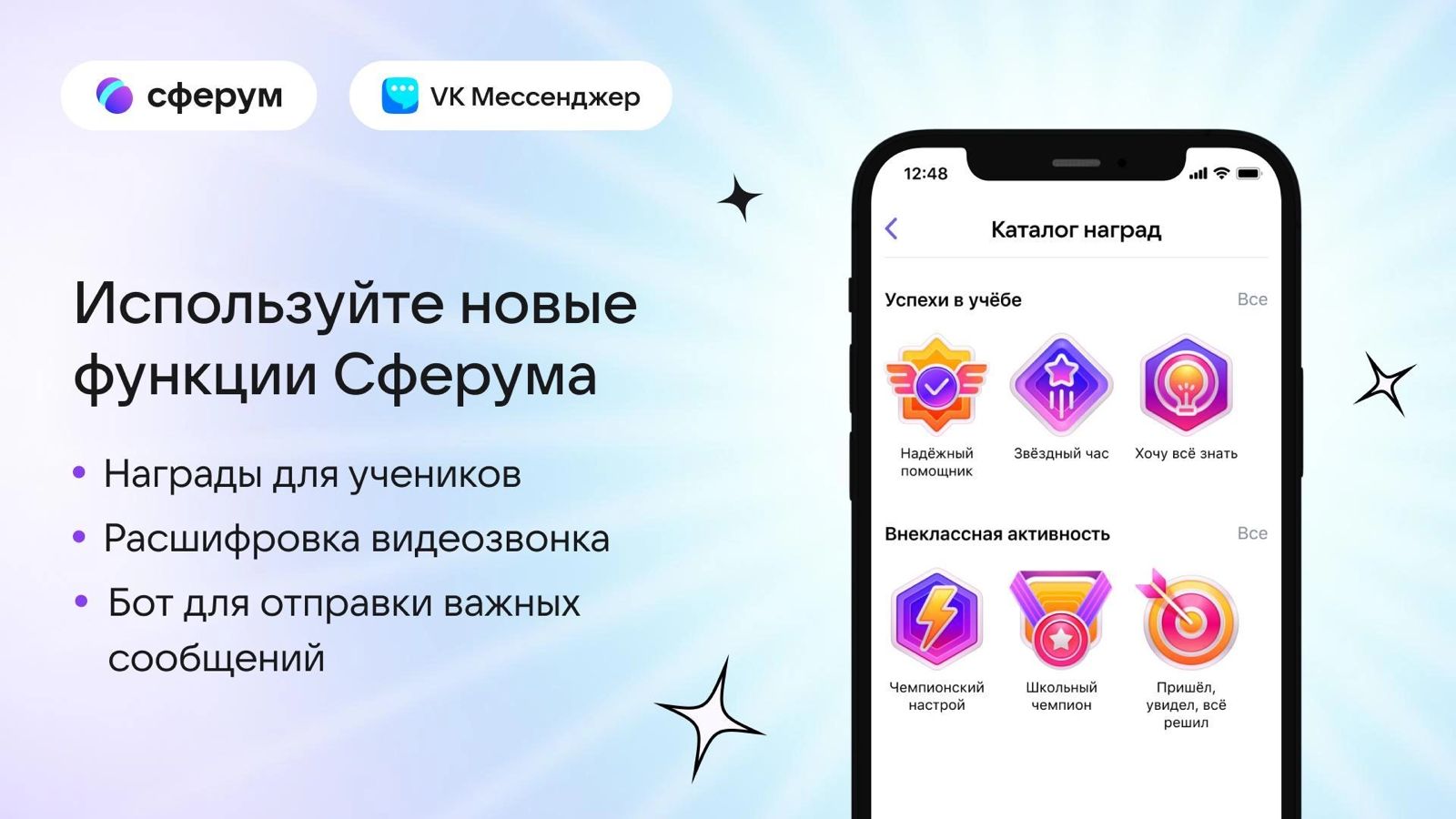 16.01.2024Педагоги и учащиеся Чеченской Республики получили новые возможности в Сферуме. Благодаря разделу «Награды» учителя смогут мотивировать и поощрять школьников за достижения в учебе, спорте и внеучебной деятельности с помощью специальных наград.